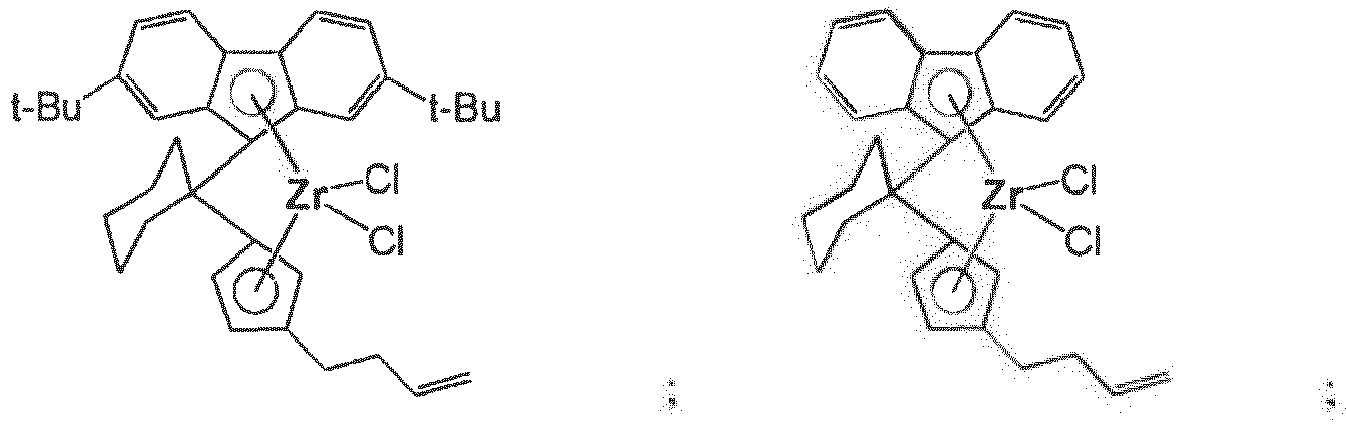 - C08F4/65927—Component covered by group C08F4/64 containing a transition metal-carbon bond containing at least one cyclopentadienyl ring, condensed or not, e.g. an indenyl or a fluorenyl ring containing at least two cyclopentadienyl rings, fused or not two cyclopentadienyl rings being mutually bridged