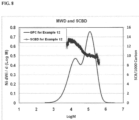 - an ethylene polymer of the present invention can be characterized as having a broad and/or a bimodal molecular weight distribution (MWD); and/or a Mn in a range from 9,000 to 30,000 g/mol; and/or a ratio of Mw/Mn from 4 to 20; and/or a ratio of the number of short chain branches (SCB) per 1000 total carbon atoms of the polymer at D90 to the number of SCB per 1000 total carbon atoms of the polymer at D10 in a range from 1.1 to 20.