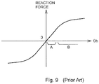 - FIG. 9 shows the conventionally employed correlation between a reaction force of a forklift and a steering angle ⁇ h.