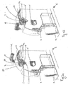 - the guide means e.g. the guide rails, and the retaining means are movable in unison.