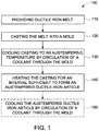 - Any suitable form of casting 120 may be utilized so long as it is compatible with the cooling 130 and heating 140 by flowing a heat transfer medium through the mold 70 proximate casting 72 as described herein.
