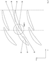 - FIG. 2 shows a plan view of a peripheral portion of a blade row group of a turbomachine, for example, a stationary gas turbine or an aircraft engine.
