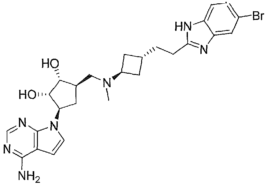 - DFEPNIGXTUYBRC-WILKGZDISA-N CN(C[C@@H](C[C@H]([C@@H]1O)[n](cc2)c3c2c(N)ncn3)[C@H]1O)[C@H]1C[C@H](CCC(NC2=C)=N/C2=C/C(Br)=C)C1 Chemical compound CN(C[C@@H](C[C@H]([C@@H]1O)[n](cc2)c3c2c(N)ncn3)[C@H]1O)[C@H]1C[C@H](CCC(NC2=C)=N/C2=C/C(Br)=C)C1 DFEPNIGXTUYBRC-WILKGZDISA-N 0.000 description 1