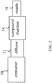 - a device for delivering a compound including a canister capable of containing a propellant, a diffuser in communication with the canister, a compound chamber in communication with the diffuser, and a nozzle in communication with the compound chamber, where the device is capable of delivering the compound to ear, skin, buccal cavity, or eyes.