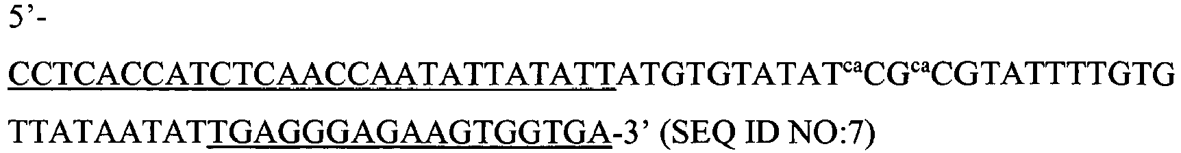 - the invention provides a method for distinguishing 5-hydroxymethylcytosine (5-hmC) from 5-methylcytosine (5-mC) in a nucleic acid molecule comprising converting 5-mC to 5-caC using enzymatic modification by a methylcytosine dioxygenase; and, detecting 5-mC in the nucleic acid by identifying 5-caC in the nucleic acid molecule by sequencing, and further comprising, treating the nucleic acid molecule having converted 5-caC with bisulfite prior to detecting 5-mC in the nucleic acid and modifying 5-hydroxymethylcytosine in the nucleic acid composition prior to converting 5-methylcytosine to 5-caC.