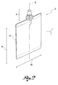 - the device 1 is suitable for sterilising containers C consisting of a body B formed of two B', B" or more walls of flexible film, facing one another and joined, for example welded along the edges, if required with gusset side walls G, and provided with a straw A in rigid material, fitted in a section of the edge of the body B, usually between the side walls.