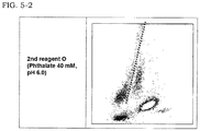 - the present invention also provides a reagent kit for classifying leukocytes comprising a first reagent containing a fluorescent dye capable of staining nucleic acid and a second reagent containing cationic and nonionic surfactants for lysing erythrocytes and damaging cell membranes of leukocytes so as to be permeable to the fluorescent dye and an aromatic organic acid at a concentration of not less than 20 mM and not more than 50 mM, wherein when the second reagent contains the aromatic organic acid at a concentration of not less than 20 mM and less than 30 mM, the second reagent has pH of not lower than 5.5 and not higher than 6.4, and when the second reagent contains the aromatic organic acid at a concentration of not less than 30 mM and not more than 50 mM, the second reagent has pH of not lower than 5.5 and not higher than 7.0.