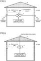 - Belüftungssystem nach Anspruch 2, dadurch gekennzeichnet, dass dieses ferner umfasst:einen ersten Umgebungssensor (7A), der eingerichtet ist, eine vorherbestimmte physikalische Größe, repräsentierend den Luftzustand im Gebäude, zu messen; undeinen zweiten Umgebungssensor (7B), der eingerichtet ist, eine vorherbestimmte physikalische Größe, repräsentierend den Zustand der Außenluft, zu messen,wobei die Belüftungssteuerungseinrichtung (1) eingerichtet ist, den Luftzuführer/Abführer (2) nicht zu betreiben, wenn ein Messungswert des zweiten Umgebungssensors (7B) größer ist als der des ersten Umgebungssensors (7A).