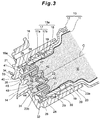 - the plug body 47 includes: a bottom-closed internal cylindrical part 24 which is arranged in the spout 13a of the container body 13 with a gap between the internal cylindrical part 24 and the spout 13a; a flange 25 which is formed so as to protrude radially outward from an upper end of the internal cylindrical part 24 and arranged at the opening end of the spout 13a of the container body 13; an external cylindrical part 26 extending upward from an outer circumferential edge of the flange 25; and a middle cylindrical part 27 extending downward from the flange 25 so as to surround the internal cylindrical part 24 from the radially outer side, the middle cylindrical part 27 being fitted into the spout 13a of the container body 13 in a liquid-tight manner (see Fig.