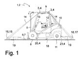 - the counterbalance forklift 2 has a guided on a mast 5 load handling device 6 in the form of a fork formed by two forks 7.