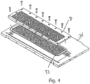 - Figure 4 shows an unassembled view of a fill plate 30, stripper plate 32 and a top plate 34.