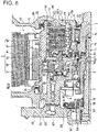- the drive-side sprocket 51 is mounted between the transmission input shaft 5 and an end plate 45 and is rotatably supported via a brush 55 on a stator shaft 54 that is fixed to the transmission housing 41.