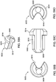- the anchors can include a fastener to lock two portions of the anchor together, such as a cinching mechanism, a ball and spring fastener, and eyelet and double barbed fastener, a ball and doubled-lumen eyelet fastener, a helical and multi-ball fastener, an eyelet and post/tab fastener, a sleeve fastener, or a multi-tabbed and eyelet fastener.