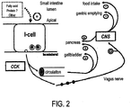 - embodiments of the invention act by eliciting satiety signals by way of physiological mechanisms, or, alternatively, by directly providing satiety signals through bioactive materials or agents, or by neuronal stimulation, thereby reducing food intake behaviorally.