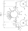- the feeding shaft 20 supports the sheet S by winding an end of the sheet S in a state in which the front surface of the sheet S faces outside. Further, the feeding shaft 20 rotates in a clockwise direction of Fig. 1 so that the sheet S wound around the feeding shaft 20 is fed through the driven roller 21 to the process unit 3.