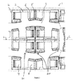 - the modules 2 are also arranged so that the respective seats of each transversely adjacent pair of passenger modules on opposite sides of an aisle face in opposite forward/rearward directions and are offset from one another in the longitudinal direction.