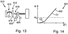 - FIG. 10 shows the diagram 421 with the torque characteristic 422 of the torsional vibration damping system 412 of FIG. 9 ,