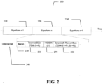 - Superframes are shown at 210, 220 and 230 with superframe 220 called out at 240 and including beacon 250, reserved block 260, handshake 270 and dynamically reserved block 280.