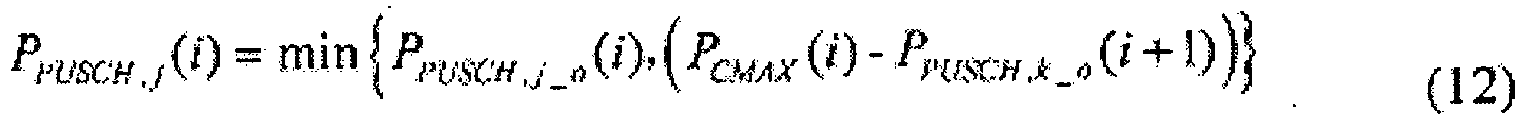 - the user equipment may also specifically determine, according to formula (13), ninth transmission power of the PUSCH of the cell in the current subframe and the another cell which processes carrier aggregation with the cell in the current subframe, where: ⁇ c ⁇ j w i ⁇ P PUSCH , c i + u i ⁇ P PUSCH , j i + v i ⁇ P PUSCH , k t ⁇ P CMAX i where w ( i ) , u ( i ) , and v ( i ) represent weighting factors, whose value range is [0, 1]; c represents a cell; ⁇ c ⁇ j w i ⁇ P PUSCH , c i represents ninth transmission power of a PUSCH bearing no uplink control signaling of the cell in the current subframe and the another cell which processes carrier aggregation with the cell in the current subframe; P CMAX ( i ) represents maximum allowable power