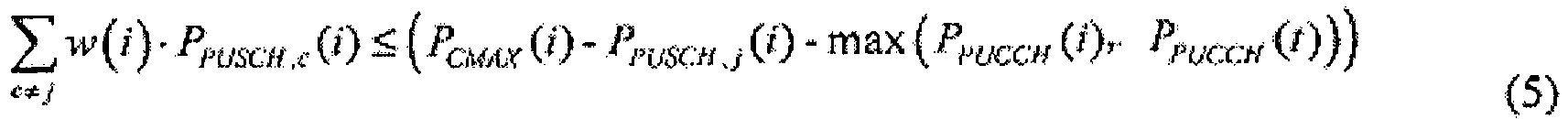 - the user equipment may also specifically determine according to formula (27), seventeenth transmission power of the PUSCH of the cell in the current subframe and the another cell which processes carrier aggregation with the cell in the current subframe, where: ⁇ c ⁇ j w i ⁇ P PUSCH , c i + u i ⁇ P PUSCH , j i + v i ⁇ P PUSCH , k t 2 ⁇ P CMAX i ⁇ max P PUCCH i , P PUCCH t 1 where w ( i ) , u ( i ) , and v ( i ) represent weighting factors, whose value range is [0, 1]; c represents a cell; ⁇ c ⁇ j w i ⁇ P PUSCH , c i represents seventeenth transmission power of a PUSCH bearing no uplink control signaling of the cell in the current subframe and the another cell which processes carrier aggregation with the cell