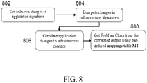 - the unknown changes are correlated to the known problem classes considering their dependencies to the changes in infrastructure signatures in step 118. We use class specific correlation enquiry to finally find the problematic or faulty system components in step 120.