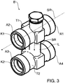 - FIG 3 shows a perspective view of a bypass device B according to yet another embodiment of the invention, while Figure 4 a cross-sectional view of the bypass device B.