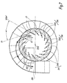 - the vector V 1 has an azimuthal component U 1, i.e. orthoradial to the axis Z202, and an outflow component D 1, i.e. radial to the axis Z202 and centrifugal.