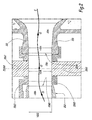 - a draft tube 26, visible in figures 1 and 5 is arranged below the runner 202. This is used, in turbine mode, to evacuate water downstream and, in pump mode, to suck in water from a water reservoir up to the runner 202.