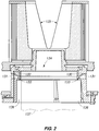 - Figure 2 is a perspective view of one of the numerous mold frameworks with which embodiments of this invention may be utilized, illustrating refractory trough 135, mold inlet 134, mold outlet 136, permeable perimeter wall, 130, typically a graphite ring, water inlet conduits 133 and mold framework 131.