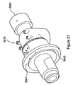 - the flow regulator may be adapted to engage one of the body portions such that further movement of the flow regulator may move the body portion with respect to the other body portion, thereby increasing the size of the outlet.
