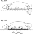 - a thirtieth embodiment described but not claimed is a movable underbody adapted for use in conjunction with a motor vehicle, a body, a motor adapted to propel said motor vehicle, a set of wheels for supporting said motor vehicle on a roadway, said set of wheels comprising a pair of front wheels and a pair of rear wheels, wherein said set of wheels define a set of corner areas of said motor vehicle, a suspension system connecting said body with each of said wheels, said suspension system being adapted to permit relative displacement between said wheels and said body, said movable underbody being adapted to reduce aerodynamic drag, said movable underbody including a corresponding set of corner areas, and said movable underbody not being fixed to said body.