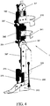 - the two legs are joined at the pelvis height through a read handle 92 that can be adjusted in its width, that prevents their relative rotation and allows placing a box 22 containing the valve assembly for supply and the pneumatic cylinders exhaust, a distribution plate for compressed air and the control card to which input and output signals are connected between orthosis 1 and ground managing system 5.