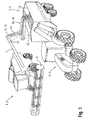 - the discharge chute 7 is also adjustable. Its degrees of freedom include, in a manner known per se, rotation about a vertical axis passing through its base attached to the harvester 2, rotation about an axis extending horizontally through the base, and pivotal movement of a flap 15 at the discharge end 8.