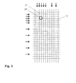 - The method according to any one of claims 2-6, wherein the number of rows (13) is in the range from 10 to 300, preferably in the range from 10 to 50, and the number of columns (14) is in the range from 10 to 300, preferably in the range from 10 to 50, and more preferably the number of rows (13) is 23 and the number of columns (14) is 12.