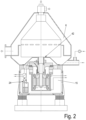 - Fig. 1 shows a separator arrangement 1 with a separator with a vertical axis of rotation D, which has a rotatable drum 2 which is placed on a rotatable drive spindle 3.