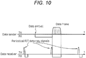- a data transmitting/receiving method is characterized in that, in the data transmitting/receiving method according to claim 1, in the synchronization establishing step, the device that receives the data frame periodically repeats standby for a short time, and the device that transmits the data frame continuously transmits a first synchronization signal representing transmission timing of the data frame as the predetermined synchronization information before the transmission of the data frame