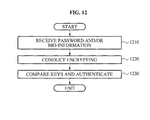 - the information processing method may further include decrypting, by the encryption unit of the information processing apparatus, at least one of the encrypted password and the encrypted bio-information to generate the at least one of the first user input password and the first user bio-information when the at least one of the second user input password and the second user bio-information is input to the information processing apparatus from a user, and comparing, an authentication unit of the information processing apparatus, the at least one of the decrypted first user input password and the decrypted first user bio-information with at least one of the second user input password and the second user bio-information.