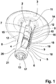 Fig. 1 entnehmen, dass das Innenteil 13 zwei Hintergriffarme 20, 21 aufweist, die an der Endhülse 17 angeformt sind und die sich durch die Wandfreimachungen 7, 8 hindurch in Richtung des Abdeckschirmes 3 schräg nach radial außen sowie über den Außenumfang des Außenteiles 1 überstehend erstrecken. -