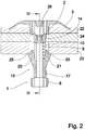 - Fig. 4 shows in a first sectional view as shown in FIG Fig. 2 the embodiment according to Fig. 1 in a further final assembly arrangement when connecting now only a first element 22 and a second element 23, which has a smaller overall thickness than that in Fig. 2 and Fig. 3 shown composite of a total of three elements 22, 23, 24 have.