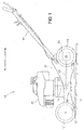 - the rotation of the output shaft 16 is transmitted to the blade mounting structure 20, so that a grass cutting blade 31 rotates. In this manner, the walk-behind lawn mower 10 can cut or clip grass by means of the grass cutting blade 31 while self-traveling.
