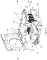 Figure 3 shows in a perspective view an internal part of the front panel and the upper half-shell and the lower half-shell of the supporting basement of the heat pump laundry treatment ofFigure 1 , with parts removed for clarity; -