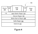 - the upper barrier region 114 may comprise a material with a larger band gap than the channel region 108 in an embodiment.