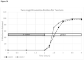 - less than 15%, 10%, or 5% of the biguanide compound is released after two hours in aqueous medium of 0.1 N HCl, 30 minutes in an aqueous medium at pH 5.5, and during a lag phase of at least ten or fifteen minutes at pH 6.8.