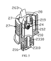 - the pair of piercing members 263 is used for piercing through the first sealing portion 441 of the the sealing member 44 of the cartridge 40, whereby enabling the reservoir chamber 43 of the cartridge 40 and the reservoir room 219 communicating with each other so that the liquid solution in the reservoir chamber 43 may flow into the reservoir room 219.