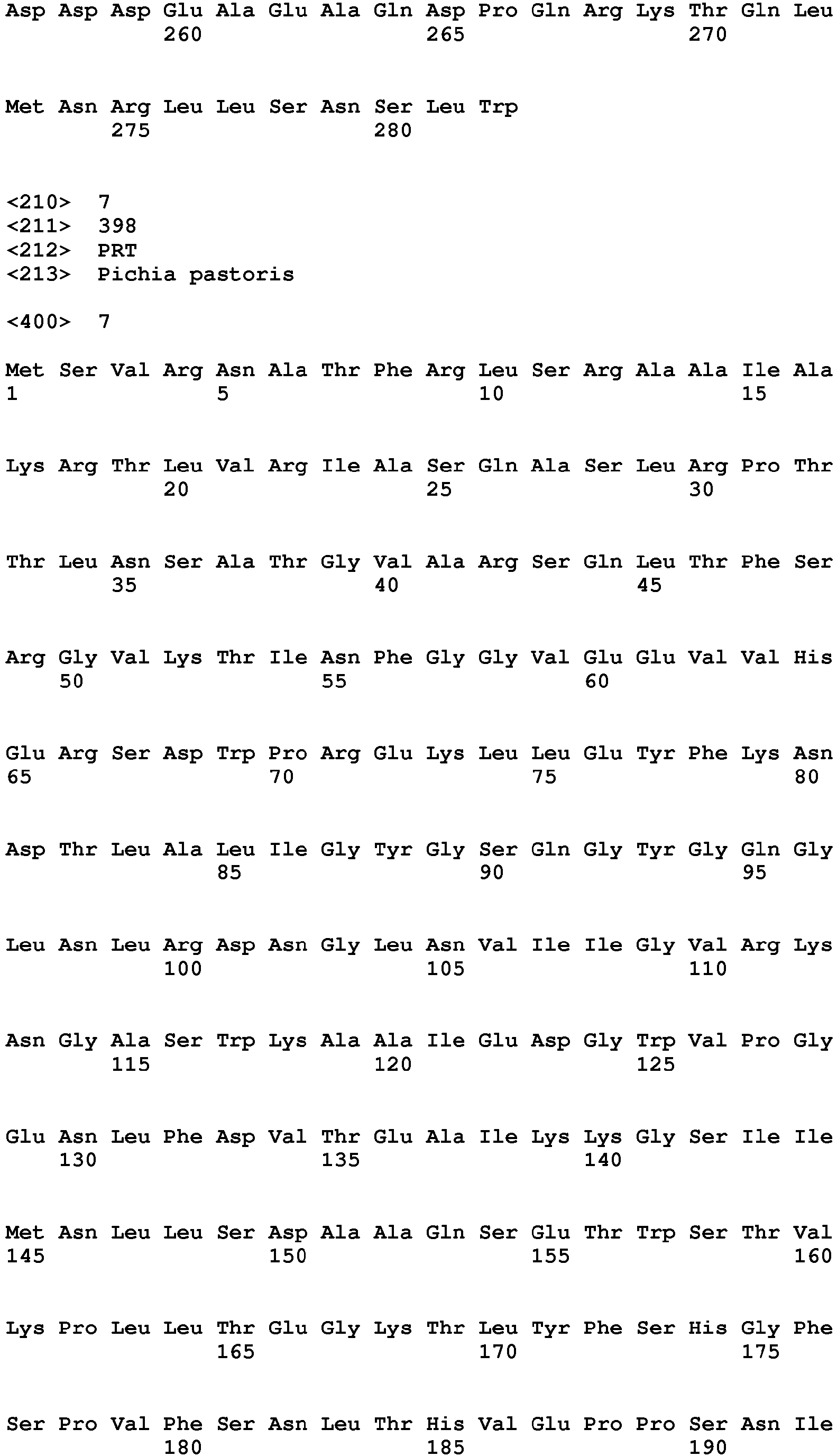 | DATABASE Geneseq [online] 21 June 2012 (2012-06-21), "Pichia pastoris ARG9 protein, SEQ ID NO:6.", retrieved from EBI accession no. GSP:AZV50730 Database accession no. AZV50730 * |