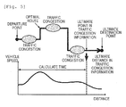 - a below-described route passing speed pattern which is calculated on the infrastructure server side (the information processing apparatus side) illustrated in Fig. 6 minimizes consumption energy for all the vehicles in consideration of the prospective traffic congestion information, and the optimal target vehicle-speed pattern herein optimizes a single vehicle's movement such as the energy consumption of the vehicle, the riding comfort, and the safety, thereby having objectives different from each other.