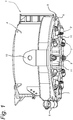 - the gripping devices are mounted to the frame by means of a respective pivot which allows rotation according to a respective pivot axis which is oriented tangentially or transversally with respect to the frame, and which gripping devices are displaceable between a active position which is radially or transversely oriented with respect to the longitudinal axis of the frame and an inactive position slanted with respect to the radially or transversely oriented active position.
