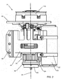 - the mounting arrangement may further include a lower mount spaced from the upper mount, and a lower mount bearing mounted to the lower mount, the lower mount bearing having an outer race mounted to the lower mount and an inner race connected to the housing for rotation relative to the outer race; the lower mount being adjustably mounted so that inner races of the upper mount bearing and the lower mount bearing rotate about the rotation axis.