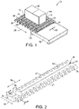 - the base 52 is retained in and rides transversely across the width of the belt module 26 in a slot 56 shaped like an inverted T.