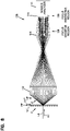 - the illustrated portion of the flow cytometer 100 depicts the light beam LB, fluid F stream, light rays LR radiated from the fluid F stream, and the optics system 108.